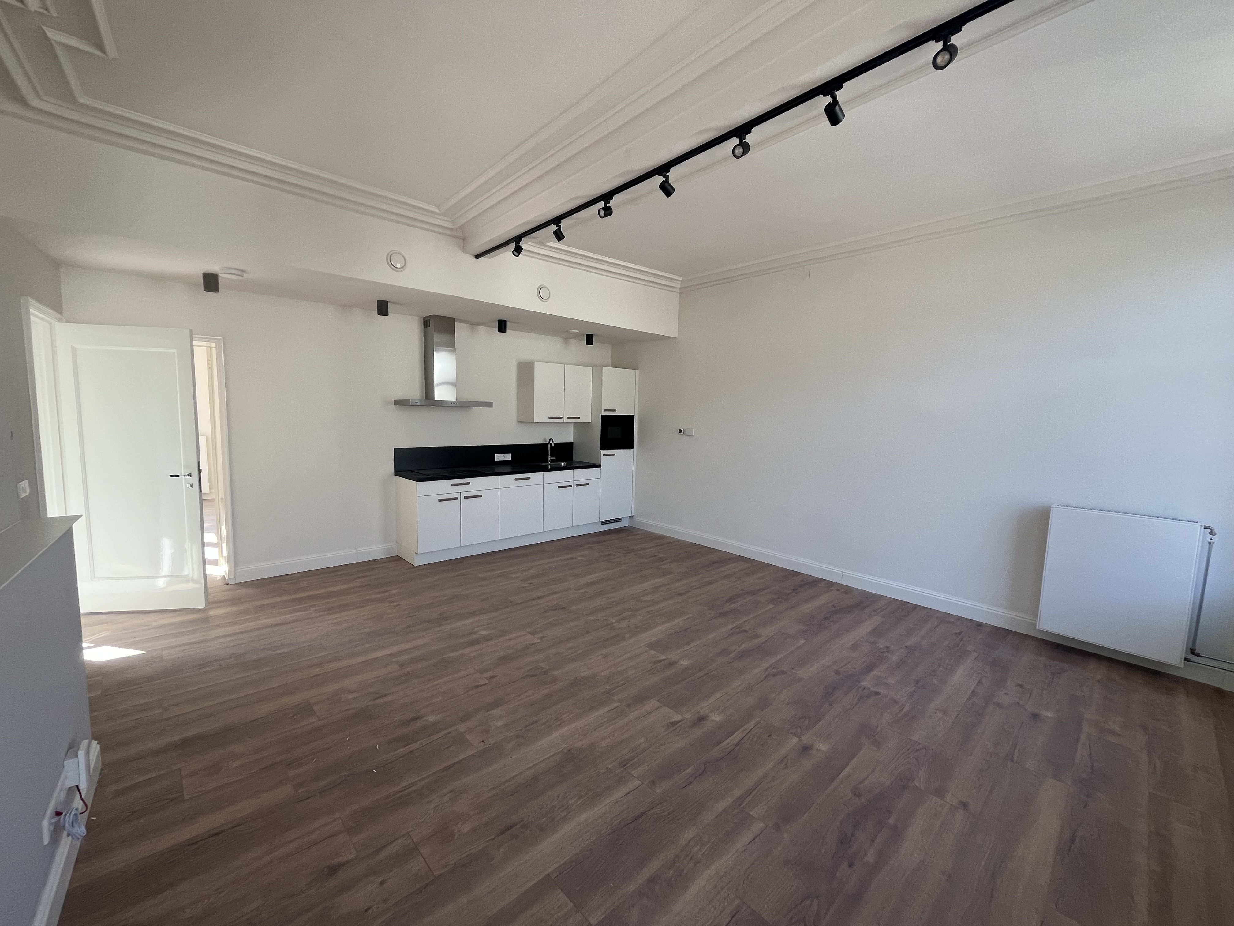 Het appartement zelf is zorgvuldig gerenoveerd om een perfecte balans te creëren tussen historische charme en modern wooncomfort. U betreedt de eerste verdieping via de eigen voordeur met ruime hal en vindt een lichte, ruime leefruimte met een stijlvolle laminaatvloer. De moderne keuken is uitgerust met hoogwaardige apparatuur, waaronder een inductiekookplaat, vaatwasser en een combi-oven/magnetron, waardoor koken een genot wordt. Vanuit de hal stapt u zo het privé dakterras op, een ideale plek om te ontspannen en te genieten van de frisse lucht.