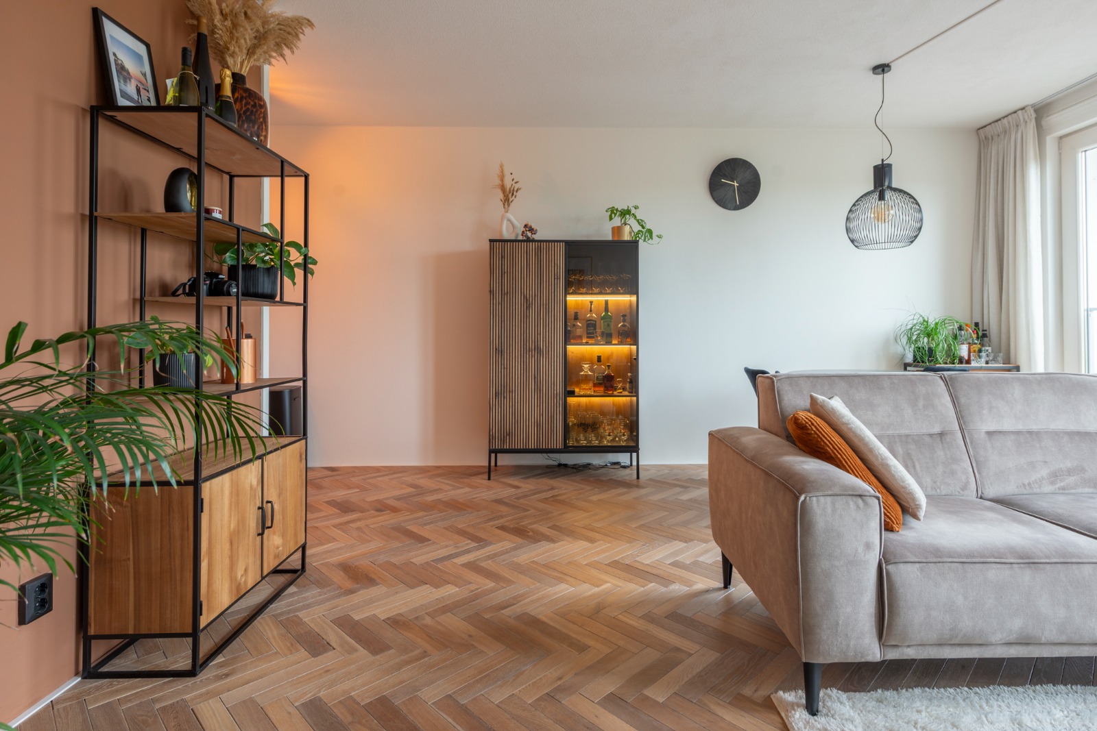 Zodra je de deur van nummer 106 binnenstapt, valt vooral het afwerkingsniveau en de rustige uitstraling op. Het appartement is in 2023 gemoderniseerd waarbij is gekozen voor een warme maar ook strakke stijl. Zo is de gehele woning (behalve de badkamer) voorzien van een fraaie in visgraatmotief gelegde houten lamelparketvloer.