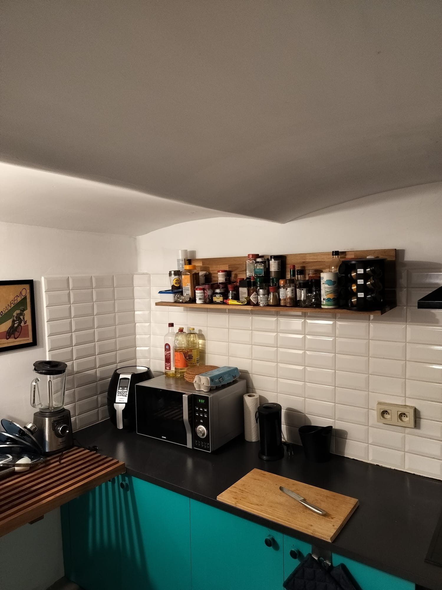 Het huis zelf bestaat uit 5 verdiepingen. Ruime keuken, gelijkvloers en daarboven nog 3 verdiepingen. Het heeft twee toiletten, 1 aparte douche en een wasruimte ter beschikking.