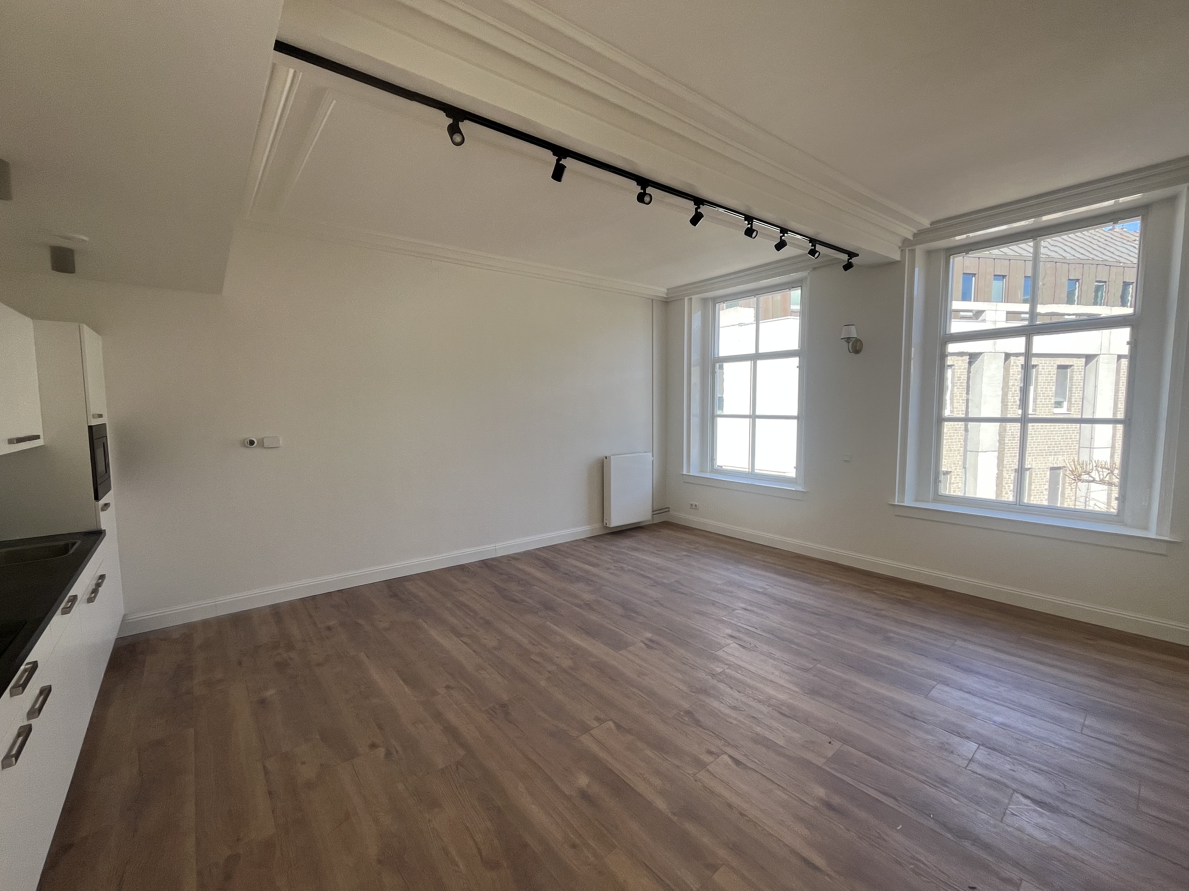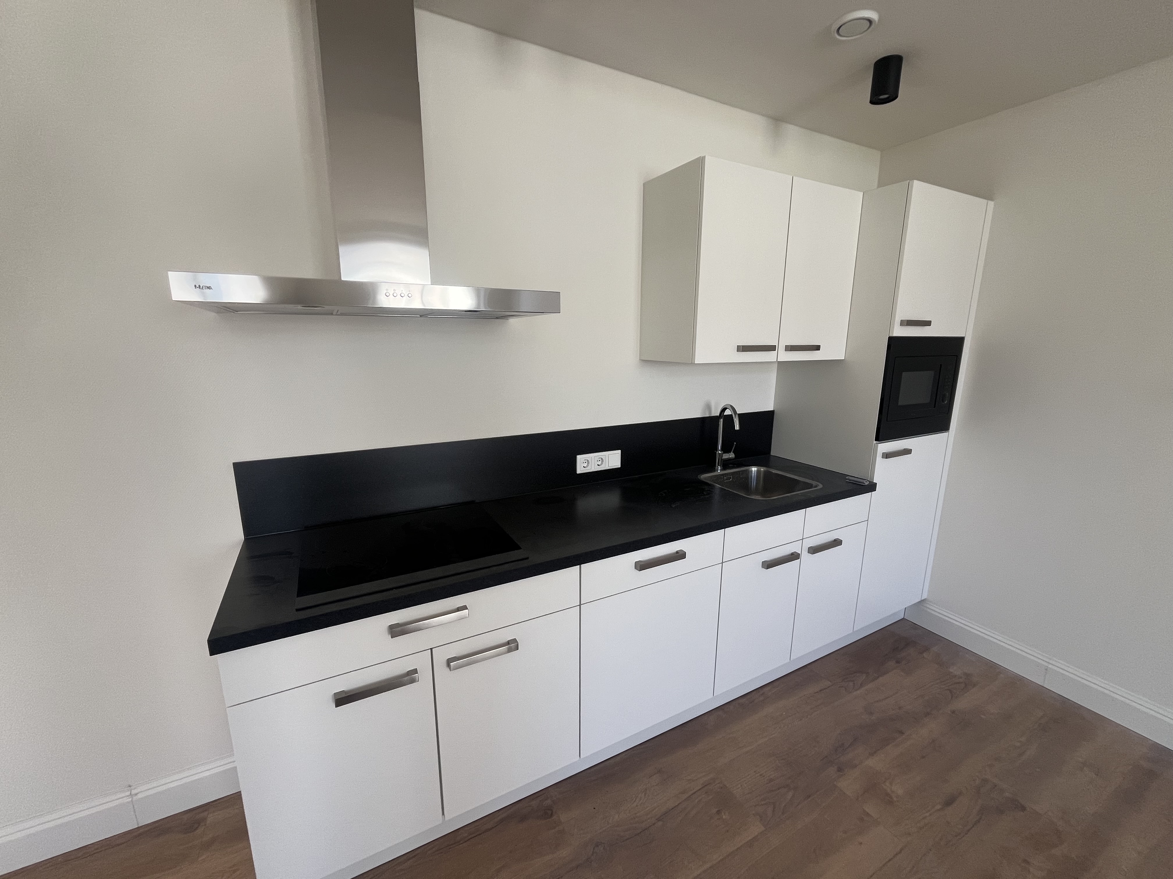 Het appartement zelf is zorgvuldig gerenoveerd om een perfecte balans te creëren tussen historische charme en modern wooncomfort. U betreedt de eerste verdieping via de eigen voordeur met ruime hal en vindt een lichte, ruime leefruimte met een stijlvolle laminaatvloer. De moderne keuken is uitgerust met hoogwaardige apparatuur, waaronder een inductiekookplaat, vaatwasser en een combi-oven/magnetron, waardoor koken een genot wordt. Vanuit de hal stapt u zo het privé dakterras op, een ideale plek om te ontspannen en te genieten van de frisse lucht.
